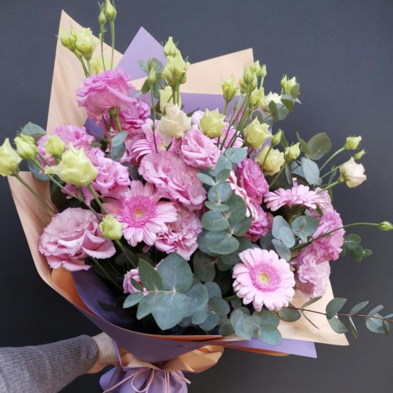 Букет с эустомой и другими цветами в Томске