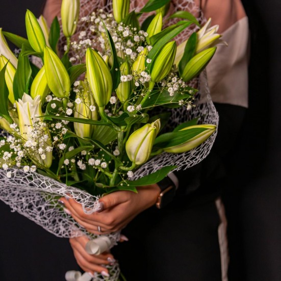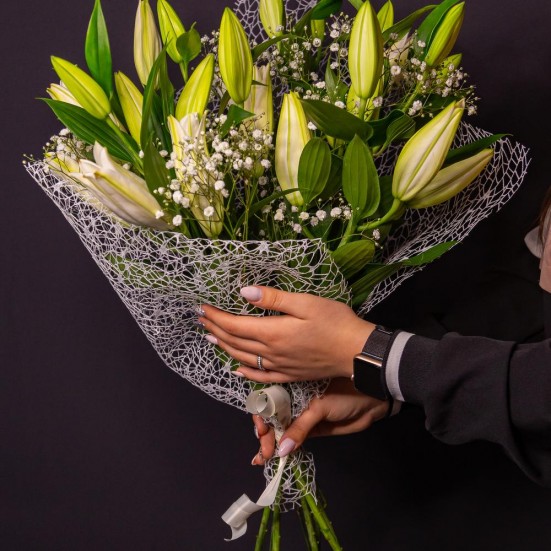 Букет из лилий и гипсофилы в Томске