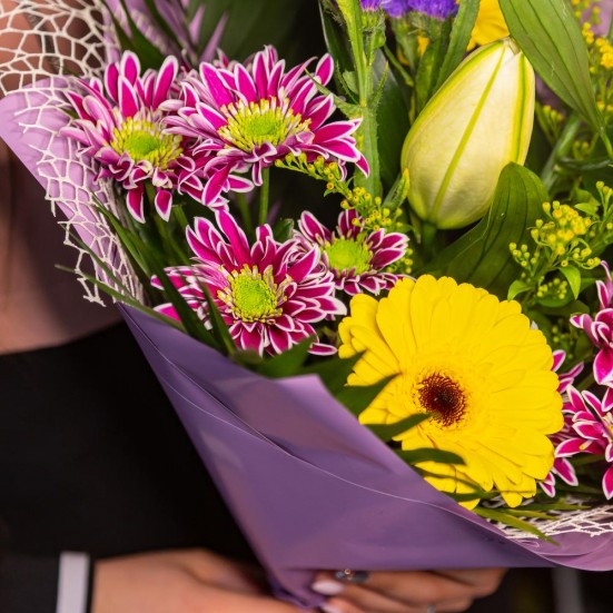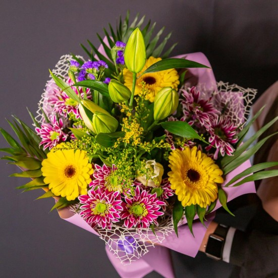 Букет с розами, хризантемами, лилиями, герберами в Томске