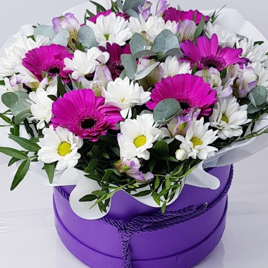 Гербера фиолетовая в коробкеф